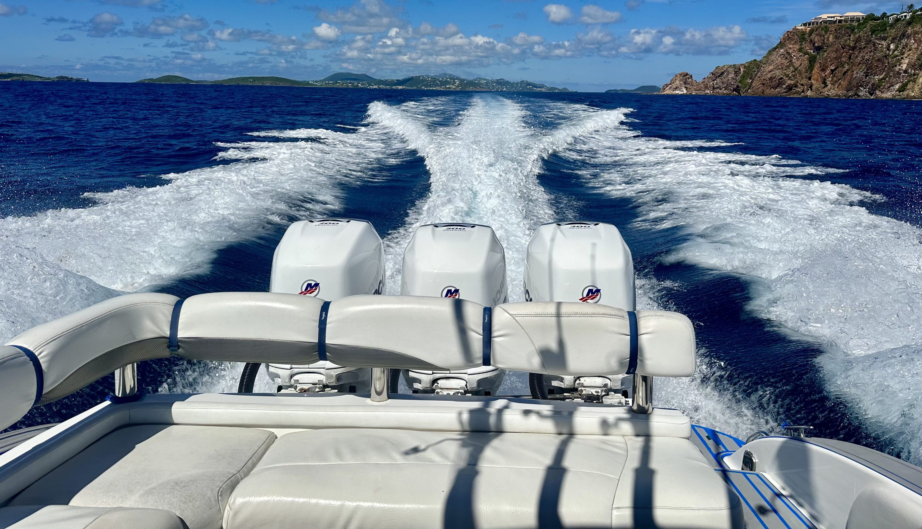 A day trip aboard Calico Jack (34′ Regulator) will cost $950 for a trip in the USVI and $1350 for a trip in the BVI. A day trip aboard Anne Bonny (40′ Statement) will cost $1400 in the USVI and $1850 in the BVI. A day trip aboard Black Bart is for the USVI only and will cost $775. Prices are for up to 6 people, which includes the captain’s fee. For each additional person over 6 and up to 10 there is an approximately $100 charge. Fuel is an additional cost and is calculated based on the trip. Alibi has a fuel reader on board, ensuring that we charge you accurately. Customs fees are approximately $85 per person if we visit the British Virgin Islands.